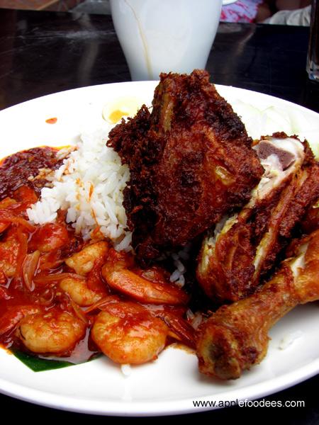 Seasoned Fried Chicken and Sambal Prawns Rice