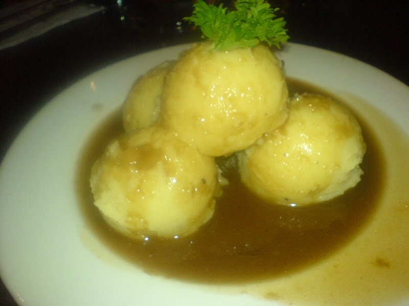 Mushroom Balls + Mashed Potatoes + Mushroom Sauce + Crispy Crunch (Beef Bacon