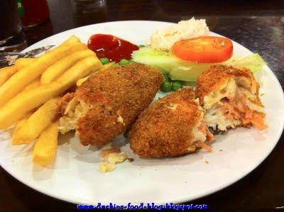 Deep fried fish stuffed with ham & cheese