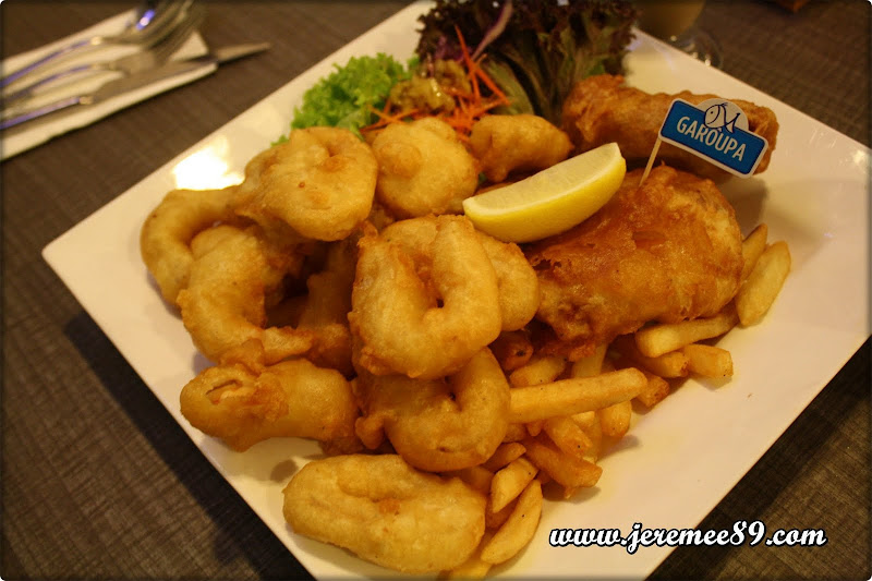Prawn, calamari and chips
