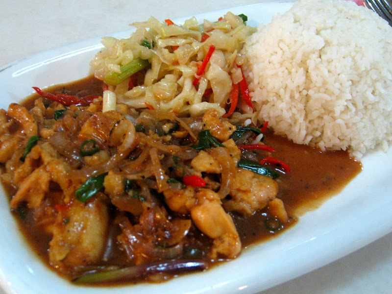 Chicken Chop (from front to back), black pepper, nyonya, mushroom cheese and sweet & sour.