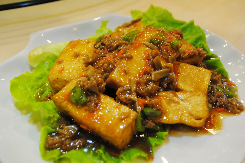 Braised Homemade Beancurd with Dried Oysters, Prawns & Vegetables