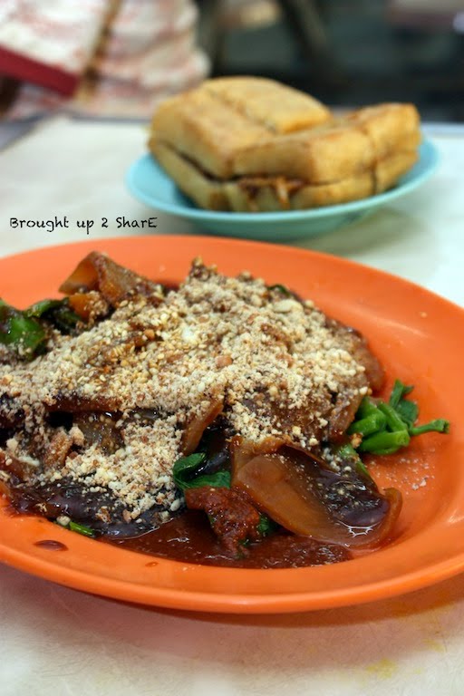 Kangkung with Cuttlefish and Tau Pok heavily dressed with a thick coat of peanut sauce